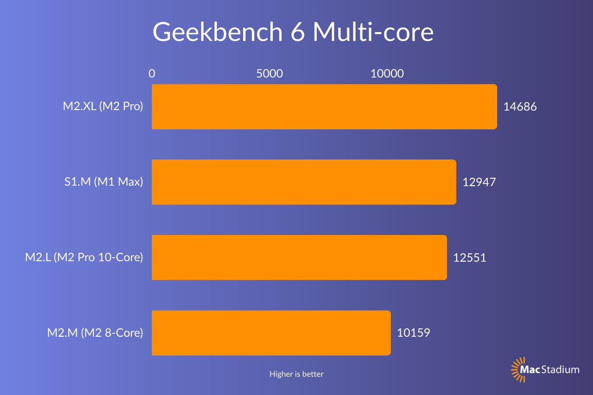 Our S1.M benchmark results show that S1.M offers very competitive performance, even when compared to the latest M2 Macs. With a Geekbench 6 score of 12947 (multi-core), this machine can help your team scale at an affordable cost.
