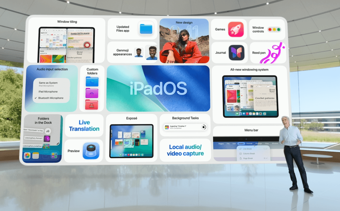 Improved multitasking: An intuitive windowing system lets users resize, tile, and manage multiple app windows easily, with Exposé and Stage Manager support.