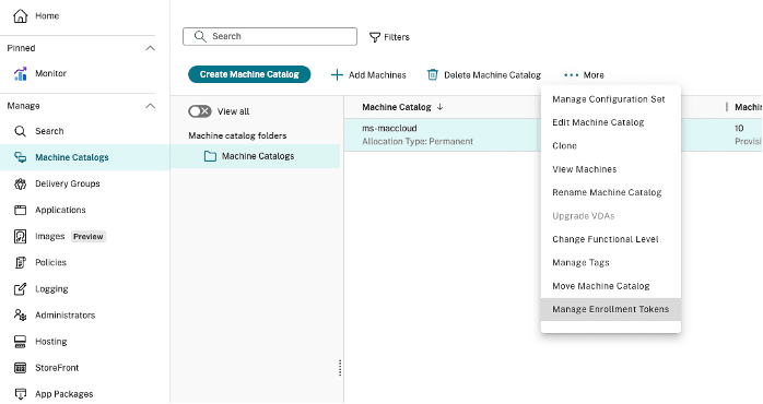 The guide will walk you through how to prepare the installation to create the Machine Catalog and Generate the enrollment token you will use with your MacStadium environment.
