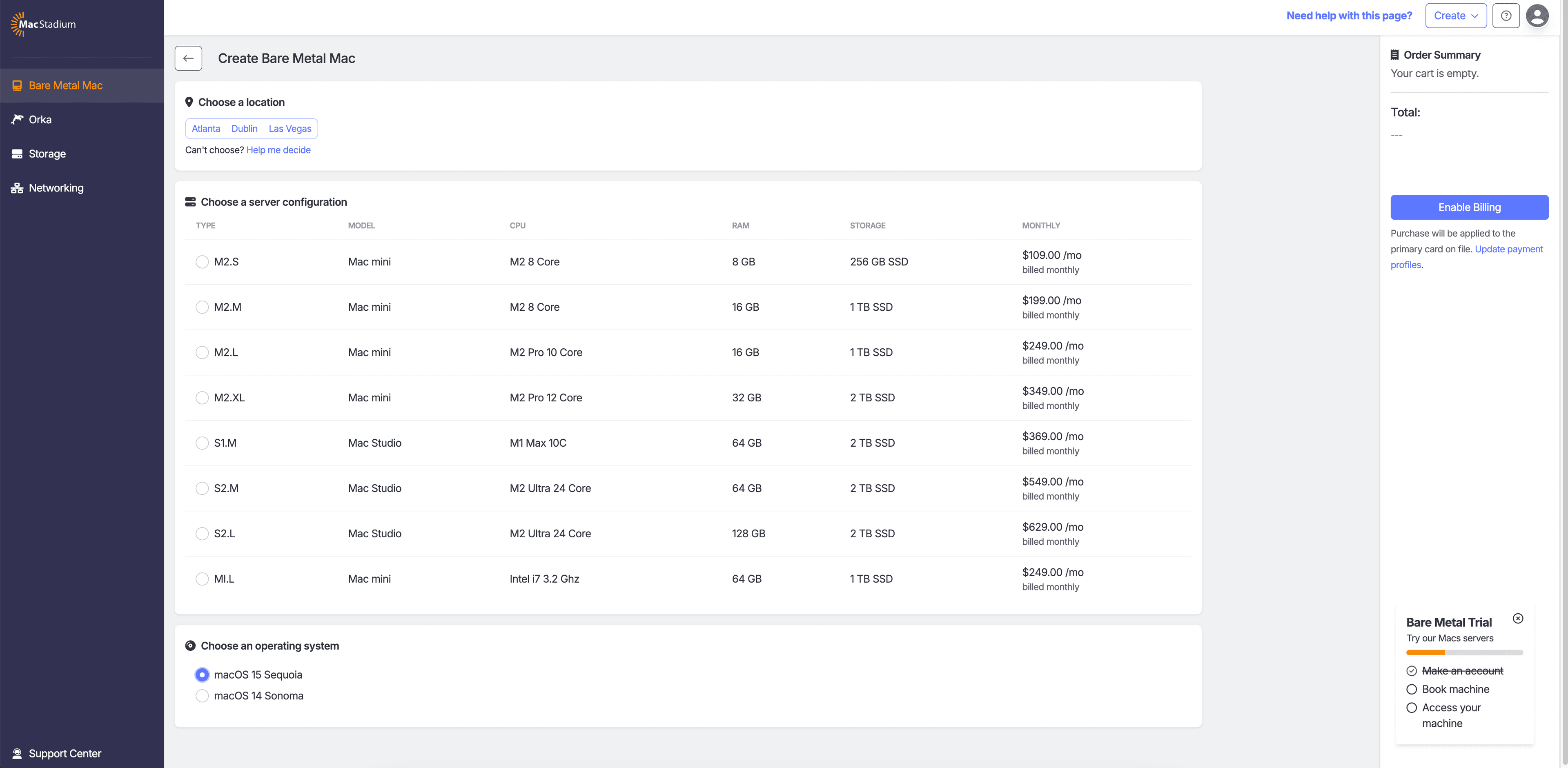 macOS 15 Sequoia is available for you to select as your installed OS on your MacStadium Bare Metal Mac.